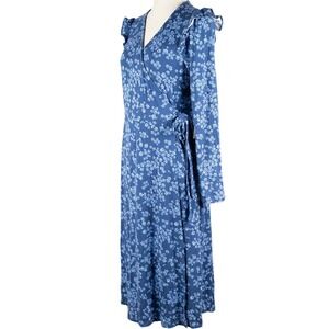Draper James RSVP Wrap Dress Floral Long Sleeve Blue Size S