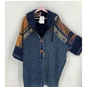 Free people Sammie combo sweater cardigan, Poncho with hood XS