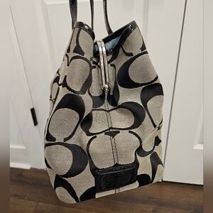 Coach Signature Kiss Lock Center Blue Interior Lined Satchel