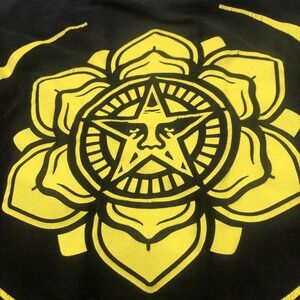Men's Obey Short Sleeve Graphic TShirt Size Large Yellow Star Flower Graphics