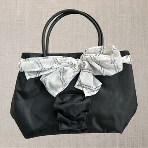 Black with white silky scarf bow