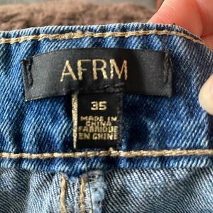 NWOT AFRM womens plus size highly distressed button fly high waist denim jeans size 35. Waist approximately 20” flat, length is 27” and rise is 12”.