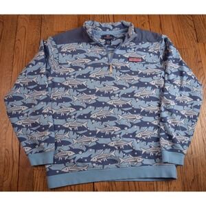 Vineyard Vines 1/4 Zip Pullover Sweater Fish All Over Print Men's Size Large