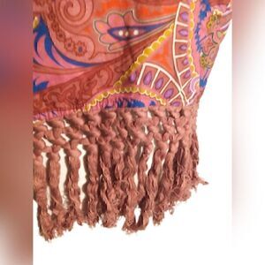 Shein Bohemian Paisley Floral Print Zipper Back Fringe Hem Cami Top L