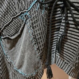 Free People All Washed Out Cardi Asymmetrical Hem Tassel Tie Front Black Small