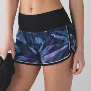 Lululemon Drop It Low Athletic Shorts in Pretty Prism Multi Black Lilac. Wear the waistband high or low. Shorts are swift fabric which is 4 way stretch, quick drying, and lightweight. Built in liner. In excellent condition, some wear to the logo. Extremely comfortable! Size 10.