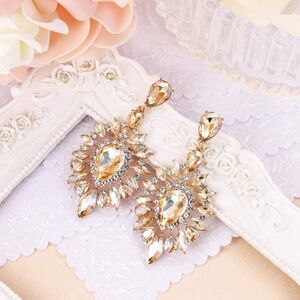 Yellow Gold with Champagne Topaz Austrian Crystal Teardrop Chandelier Earrings