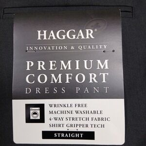Keywords: Haggar pants, mens dress slacks, charcoal trousers, straight leg pants, premium comfort, wrinkle free, stretch fabric, shirt gripper, work pants, business casual, professional attire, flex waistband