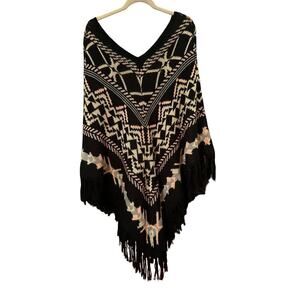 Skies are Blue Women's Acrylic Fringe Knit Pullover Poncho Sweater Size L Multi