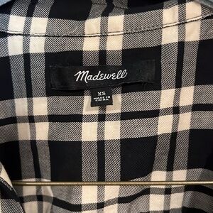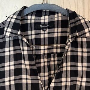 MADEWELL Arion Black and White Plaid Wrap Front Shirt, Size XS