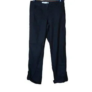 Studio M Women's Size 6 Black Casual Roll Tab Leg Linen Blend Pants New