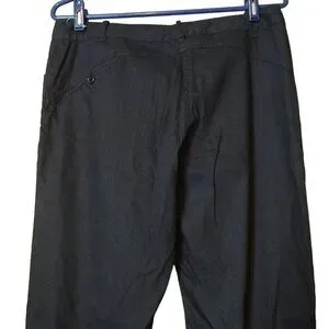 New without tags Studio M women's size 6 black roll tab leg pants are made of 55% linen, 42% rayon and 3% spandex. They have zip fly with button closure, two front pockets and one back slit pocket with button closure.