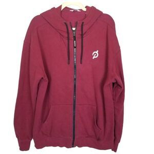 Peloton Sweatshirt Men unisex Burgundy Red Heavyweight Full Zip Fleece Hoodie Sweatshirt Pocket Normcore athletic Great condition. Smoke-free home. Measurements (approx.): Chest (pit to pit): 24" Length: 28" Sleeve Length: 25" Shoulder (shoulder seam to seam): 21"