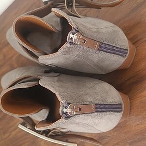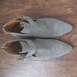 Stylish gray ankle boots. Features a sleek buckle design. Perfect for any occasion.
