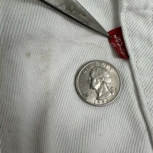The product is a pair of VTG Levi's 501 White Jeans for men, featuring a button fly and a relaxed fit. Made from 100% cotton denim with a light wash, these vintage jeans have a mid-rise and a straight leg style. They have a waist size of 32 inches and an inseam of 26 inches, making them a classic addition to any wardrobe. The jeans also boast a 5-pocket design and are machine washable, making them both stylish and easy to care for. Perfect for those who appreciate retro fashion and timeless style.