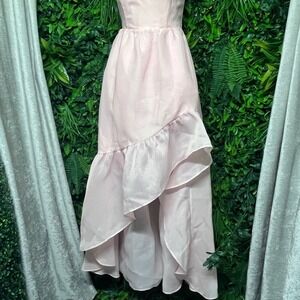 NBD X Dress XS Pink Carmelita Strapless Maxi Gown Hi Low Ruffle Organza 3203