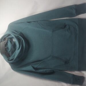 LL Bean women's cowl neck cozy pullover sweater sweatshirt size Sm Reg. Teal blue/green color with pouch pocket and thumb holes