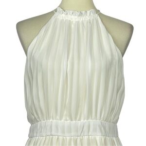 One One Six NWT Cream White Halter Sleeveless Chiffon Striped Dress Womens Size Small S. Lined, keyhole back, front left slit. Summer cocktail, wedding, party dress. Brand new with tags. See photos for measurements. Ships quickly from smoke-free home.