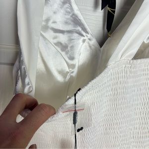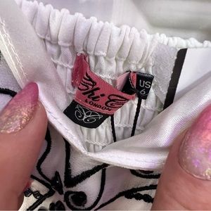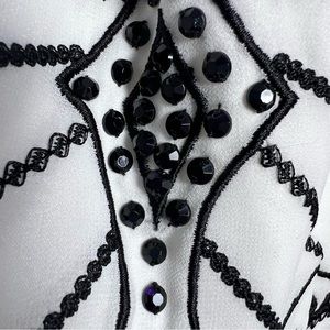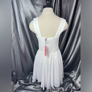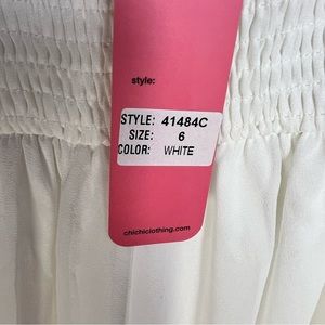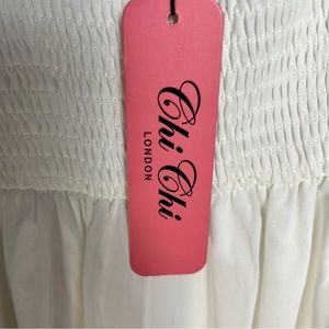 Chi Chi London NWT Size 6 White Chiffon Black Beaded Embroidered Mini Dress. Elastic back of chest. Fully lined. Pads at chest. Black embroidery and beading. Beautiful dress!