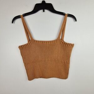 Emory Park Women's Cropped Knit Top Sleeveless Large Brown Neutral Festival Boho