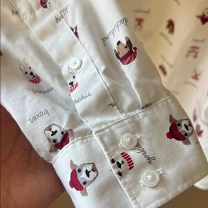 Land’s End 18P No Iron Supima Christmas Dogs Novelty Print Button Down Shirt