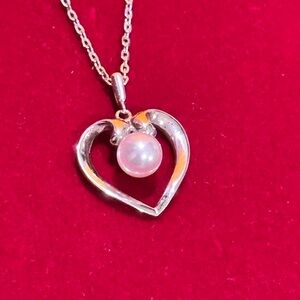 Mikimoto Silver Heart Necklace with Pearl 925 silver made.