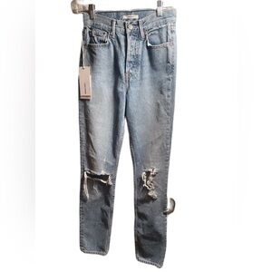 NWT GRLFRND super high rise Karolina skinny leg cotton denim distressed jeans 24