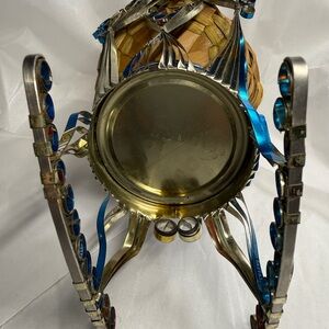 Enhance your craft space with this homemade artistic rocking chair featuring a striking blue and gold design.