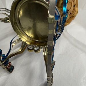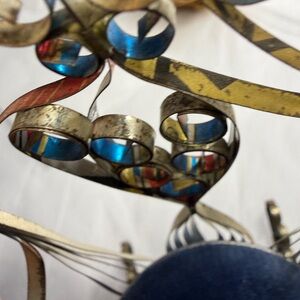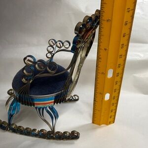 Vintage 1970 Recycled MINI Tin Can Art Blue Velvet Pin Cushion Rocking Chair