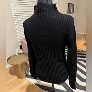 LORO PIANA 100% Cashmere Black Ribbed Turtleneck Sweater Authentic Size 44 VGUC