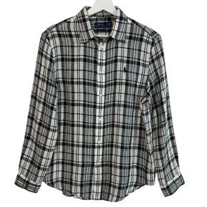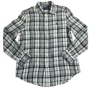 Polo Ralph Lauren Relaxed Fit Plaid 100% Linen Button Down Shirt Women’s Medium