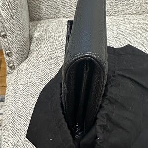 Elegant black shoulder bag with signature YSL logo. Features a sleek chain strap. Perfect for any occasion.