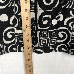 iOS Silk & Linen Jacket Women's Sz M Black Ivory Abstract Artsy Textured EUC