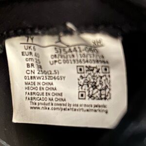 This high-top silhouette features an upper crafted out of soft black leather and satin. The soft black leather patches cover the toe, forefoot, and eyelets, while the satin is applied to the toe, mid-panel, and collar. Branding-wise, this sneaker boasts satin Nike Swooshes on its sides, a red Air Jordan wings logo embellished on its collar, and a Nike Air logo on its tongue tag. A white midsole and a black rubber outsole round out this shoe’s design. The outsole features circular patterns and is covered in texture to create some friction between the foot and the floor.