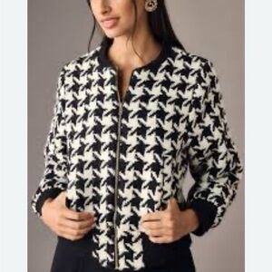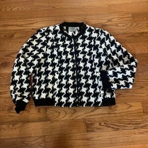 Black and white Heavy knit textile wool blend Houndstooth full Zip Up front, black cuffs and trim, front pockets