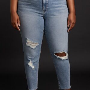 good american jeans, good american size 16, women’s plus jeans, light wash skinny jeans, ripped jeans plus size, distressed denim, raw hem jeans, curvy fit denim, good american skinny jeans, trendy ripped jeans