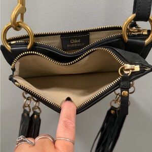 Chloe Jane fringe Black Leather Shoulder Bag crossbody boho