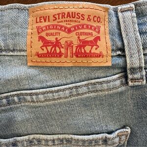 Chic Levi's denim shorts. Features floral embroidery. Ideal for casual wear.
