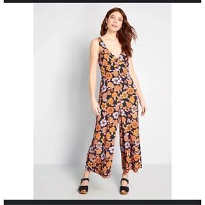 ModCloth floral retro boho festival v-neck jumpsuit S
