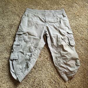 Light gray cargo pants with durable stitching. Ideal for outdoor adventures.