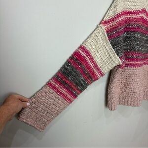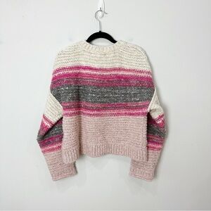 Anthropologie Pilcro Crewneck Pullover Sweater Pink Wool Stripe Chunky Knit