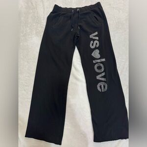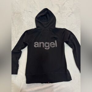 Rare Angel Victorias Secret Track Suit. This black set is from vintage collection of Angels and Super Models from their vintage shows. It came out after their well known show. Hoodie is a full zipper with two front pockets. Silver metal wings on the front side and in the zipper. Back crystal ANGEL word make of crystals. None are missing. Size XSmall. Bottom is a straight leg 31 inches long. Two front pockets. And stretchy waist and adjustable straps. Wording on leg is made of crystals none are missing. Also size XSmall. Both fit a Small and maybe a Medium. I wear s/m and they fit. It has been used no more then 2 times. No rips no stains.