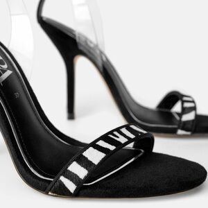 • Euro 38 / US 7.5 • Thin fabric-covered heel