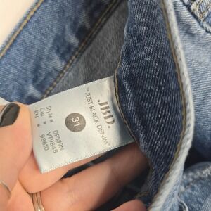 Keywords: JBD jeans, Just Black Denim, Asymmetric jeans, High rise jeans, Straight leg jeans, Light wash denim, Size 31 jeans, Women's jeans, Casual denim, Designer jeans, Contemporary denim, Unique jeans, Fashion denim, Trendy jeans