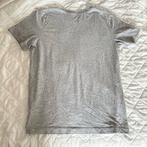 The Nike T Shirt Tee Mens Size Small in gray color features a classic basketball graphic with the iconic "Just Do It" slogan, perfect for sportswear. Made from a blend of polyester and cotton, this lightweight short sleeve tee is perfect for any occasion!