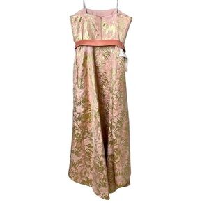 Kay Unger Blush Pink Gold Strapless High Low Hem Gown Dress