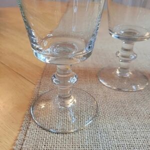 Set of 4 Vintage clear blown glass, hand turned stem, 10 ounce glasses. Wine glasses, cocktail glasses, water goblets..