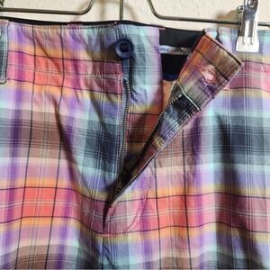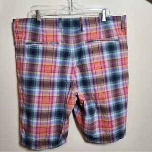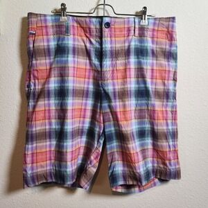 Tommy Bahama Men's Pink Purple Plaid Flat Front Performance Chino Shorts Size 36