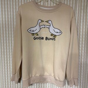 Cozy cream sweatshirt with playful goose design. Perfect for casual wear.