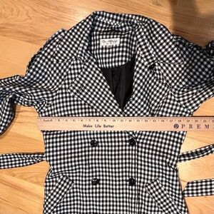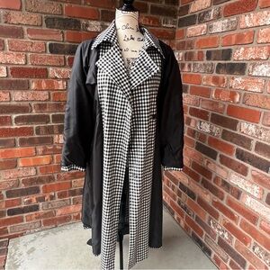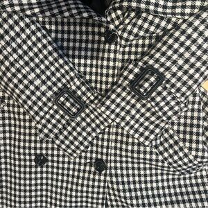 DETAILS: Stylish trench coat by Miss Selfridge. Classic black and white houndstooth design.